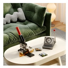 Turn your photos into durable 50x50 mm fridge magnets in minutes with this all-in-one button making machine and cutter set.