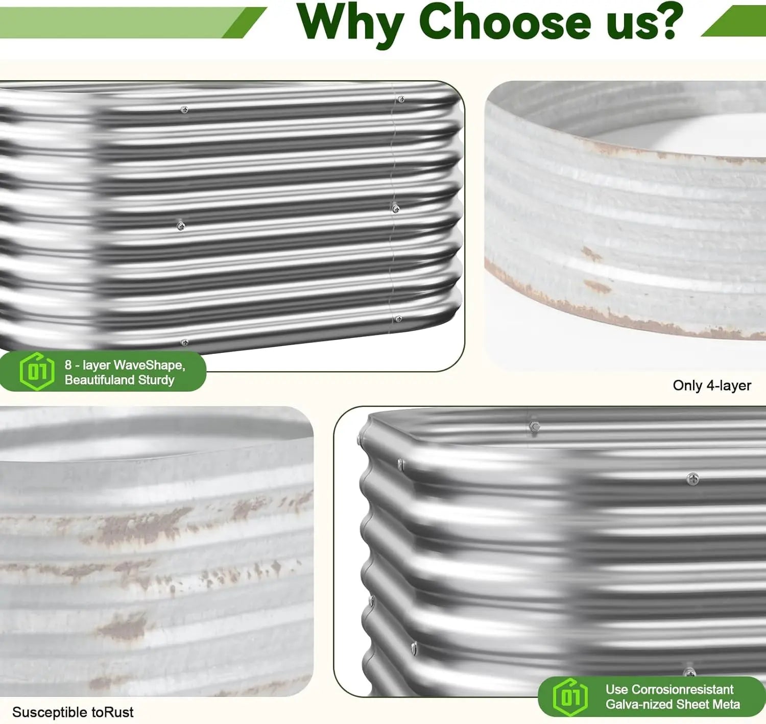 - Rugged galvanized steel with an anti-corrosion coating resists warping and heavy soil loads, ensuring a long-lasting frame without maintenance of wooden alternatives.