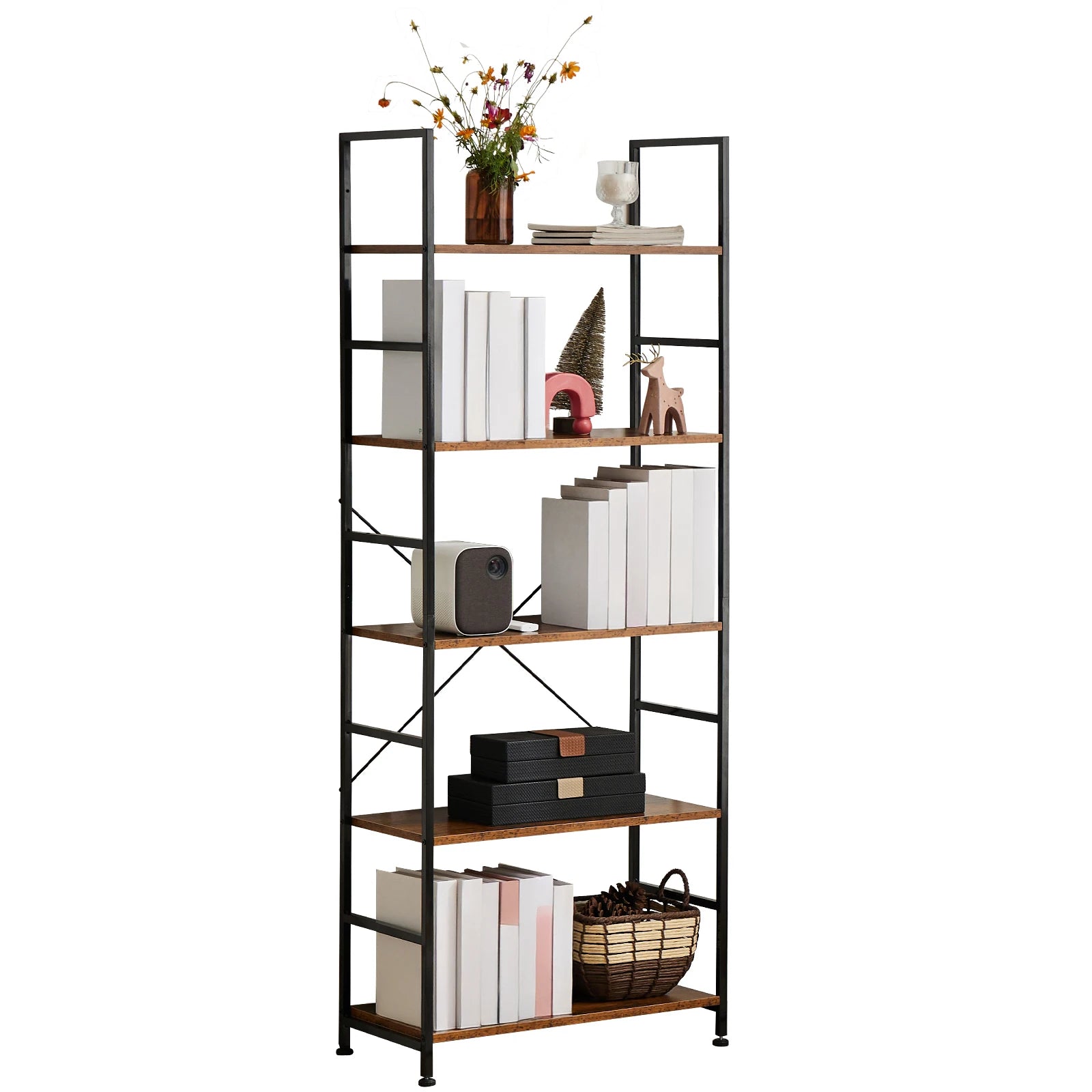- Save space: your 11.81" deep, 23.62" wide, 62.2" tall footprint fits tight corners while delivering five vertical shelves for your books, décor, or essentials.
