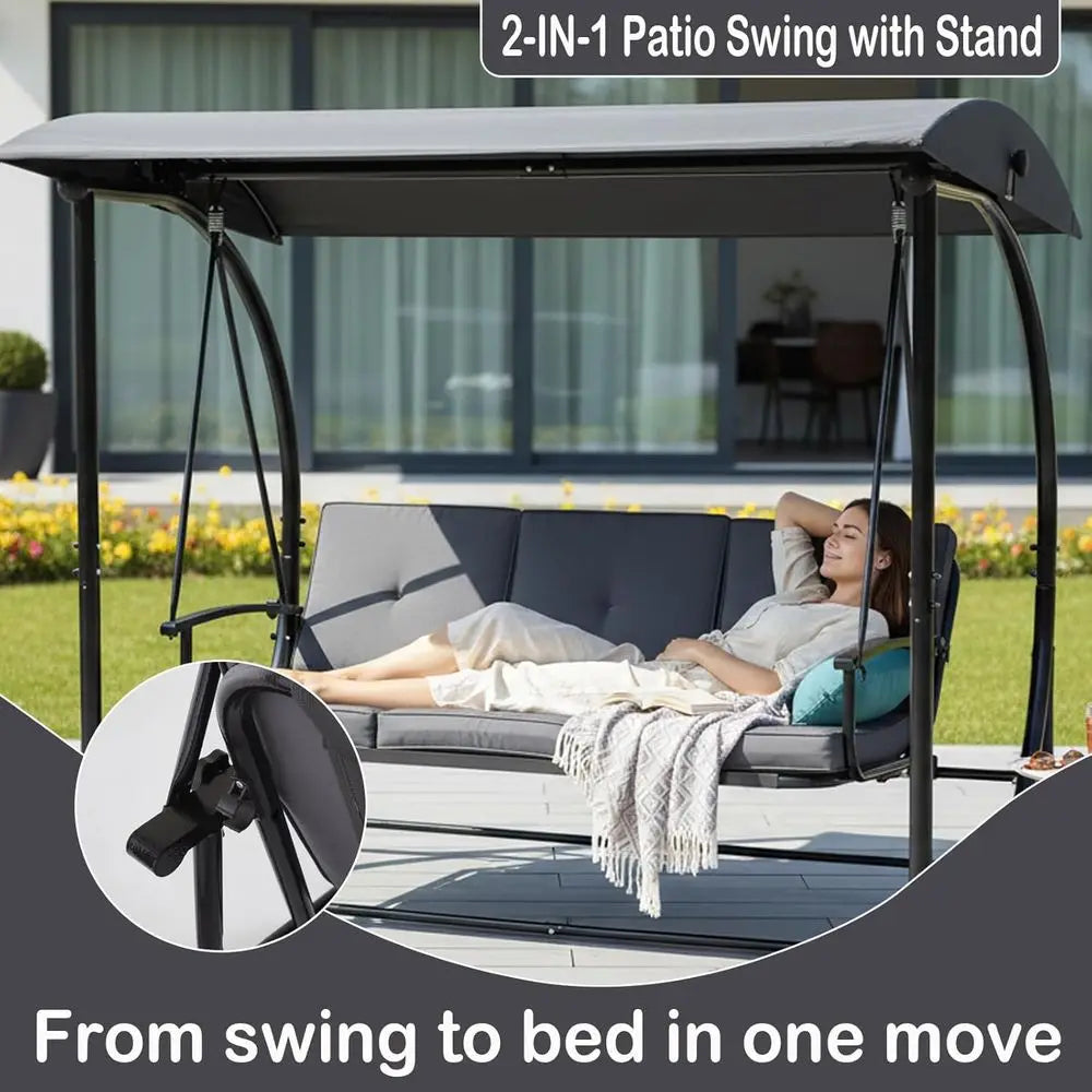 Redesign your outdoor living with a versatile patio swing that combines cozy seating and breezy rocking in a single, durable 2-in-1 design.