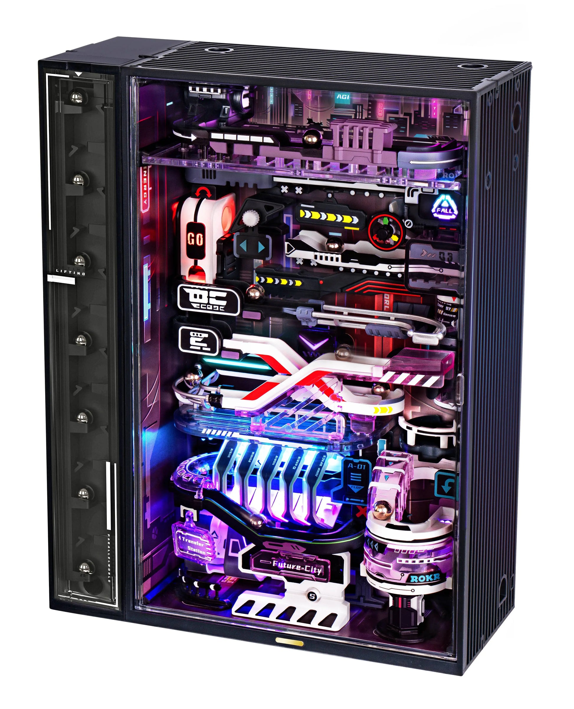 - Enjoy a sprawling cyberpunk marble run with a total 187 cm track, weaving through a vibrant city scene you assemble piece by piece.